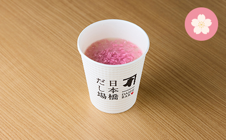 かつお節だしで割った甘酒に、桜色のフィアンティーヌを添えました。お米本来のやさしい甘さがだしの旨みを引き立てる、春限定の一杯です。