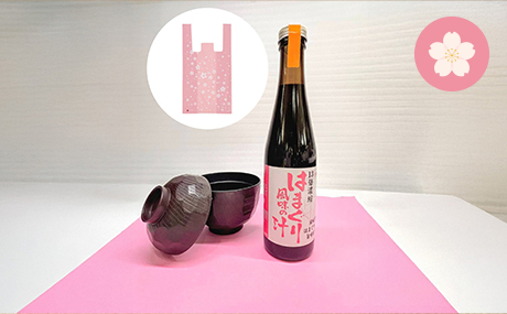 お湯で割るだけで簡単にできる美味しいお吸い物。風味豊かなはまぐりに魚介の旨味を合わせました。桜柄のお手提げ付き。