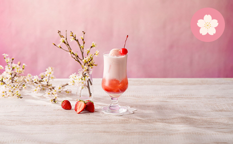 苺のソーダにさくらのアイスクリームを乗せた春にぴったりのクリームソーダ
