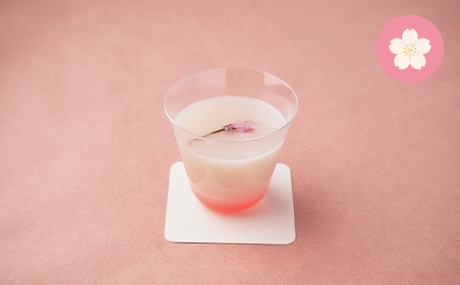 桜のリキュールを『麹だけでつくったあまさけ』と炭酸で割ったカクテルです。