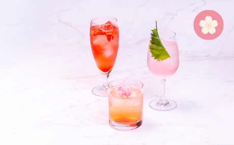 アルコール2種類、ノンアルコール1種類ご用意。優雅な桜色のカクテルで、春の魅力を存分に満喫してください。